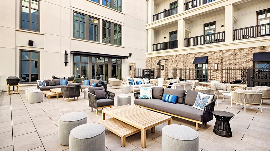 Begin your day with a specialty coffee and delicious breakfast at the on-site cafe and marketplace. After sightseeing along Charleston’s walkable streets, sit back and socialize at the lively lobby bar and lounge, get a quick workout in the fitness center, or stretch out and rest in your thoroughly modern accommodations.