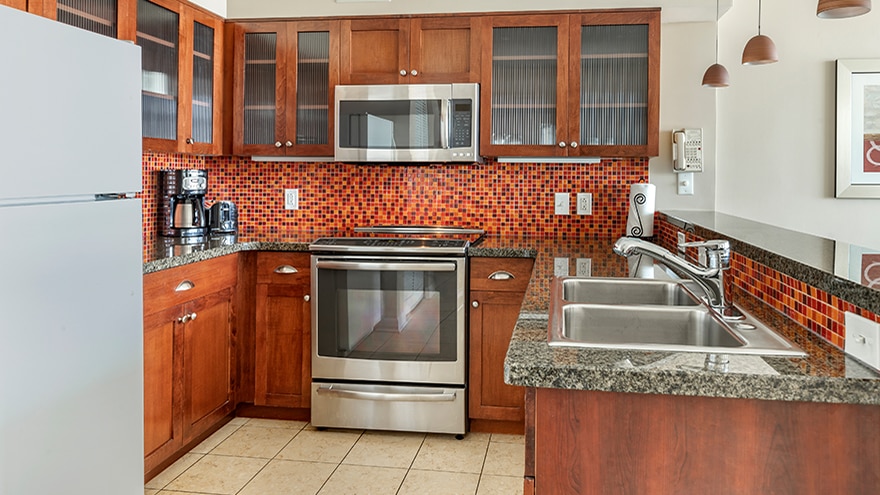 Enjoy spacious and well-appointed Studios and 1- and 2-Bedroom Suites with fully equipped kitchens.