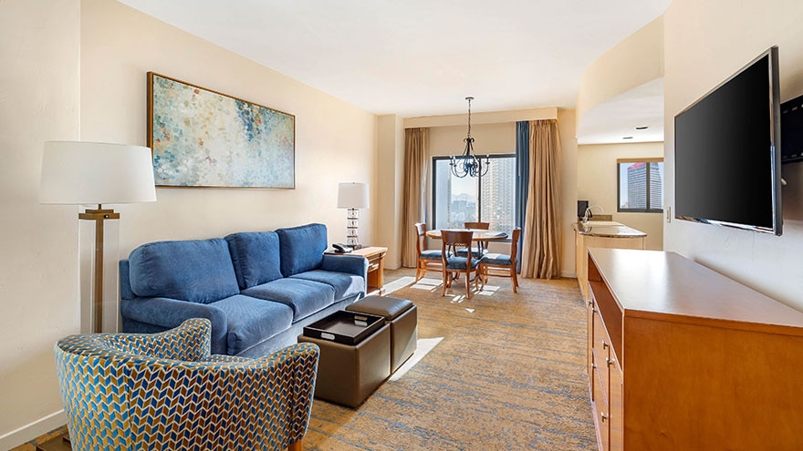 Located just steps from the vibrant Las Vegas Strip and featuring a rooftop pool deck with stunning city views, Polo Towers, a Hilton Vacation Club is a mainstay of the Las Vegas cityscape. Enjoy easy access to world-class casinos, boutique and outlet shopping, incredible entertainment and unique restaurants from the cozy haven of your refined yet comfortable resort. It’s also a property with no casino and massage services available.