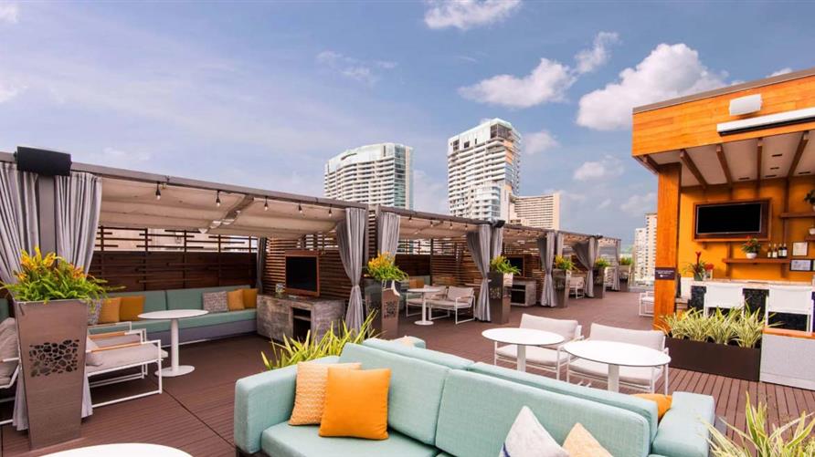 rooftop bar to adults traveling without children or to those with very small children who don’t require a large
