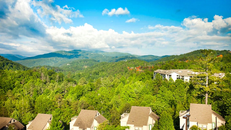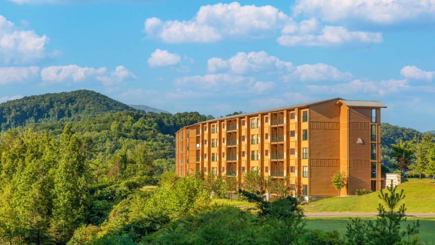 Located in the heart of the Great Smoky Mountains in Gatlinburg, Tennessee, this elegant mountain resort features 1-, 2- and 3-Bedroom Suites. Amenities include full kitchens and bathrooms, spacious living and dining areas and fireplaces. During your stay, relax by the outdoor heated pool, grill up something special on the barbecue and enjoy a round of mini-golf. You’ll delight in nearby attractions, including Anakeesta adventure park, Ripley's Aquarium of the Smokies and aerial tramway rides that soar above the horizon.