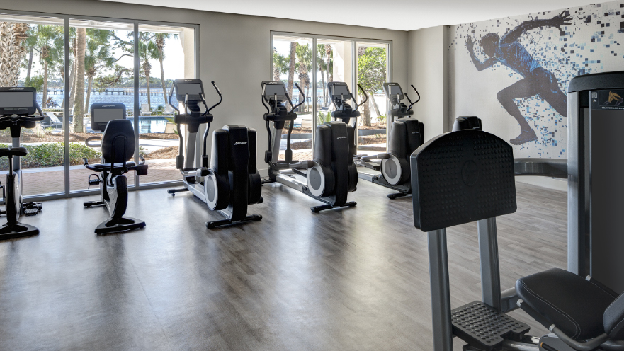 Bayside Resort, a Hilton Vacation Club in Panama City Beach, Florida, features amenities including a spa, an outdoor pool, a poolside bar, a hot tub, a game room, a fitness room, a concierge, tennis, on-site dining and a snack bar.