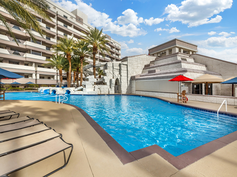 Located just south of the famous Las Vegas Strip, Cancun Las Vegas, a Hilton Vacation Club offers a retreat from the Entertainment Capital of the World’s non-stop action. Relax in a lounge chair by the pool or unwind in your spacious and comfortably appointed Suite. With a Mayan pyramid waterfall and four water slides, this resort is perfect for families who want to experience all Las Vegas has to offer.