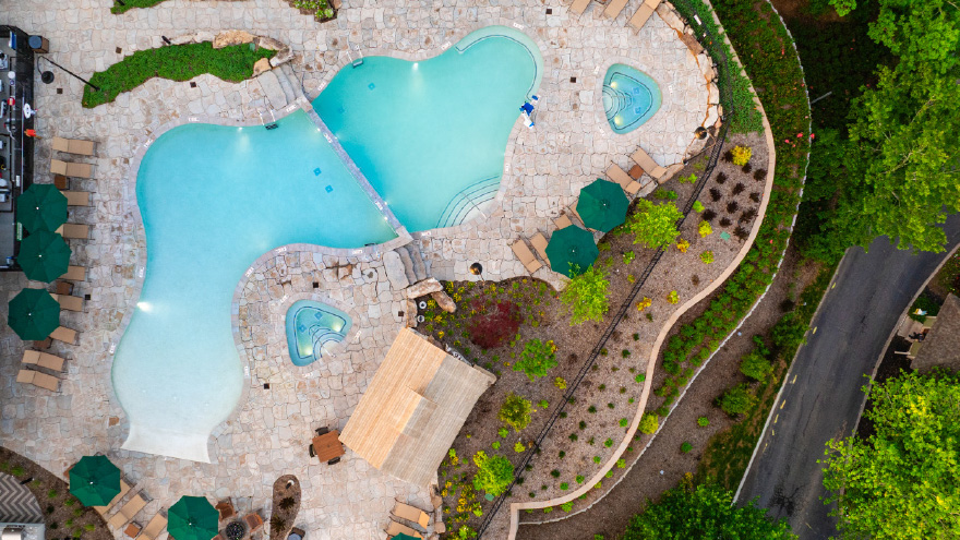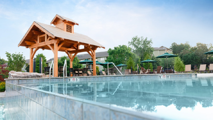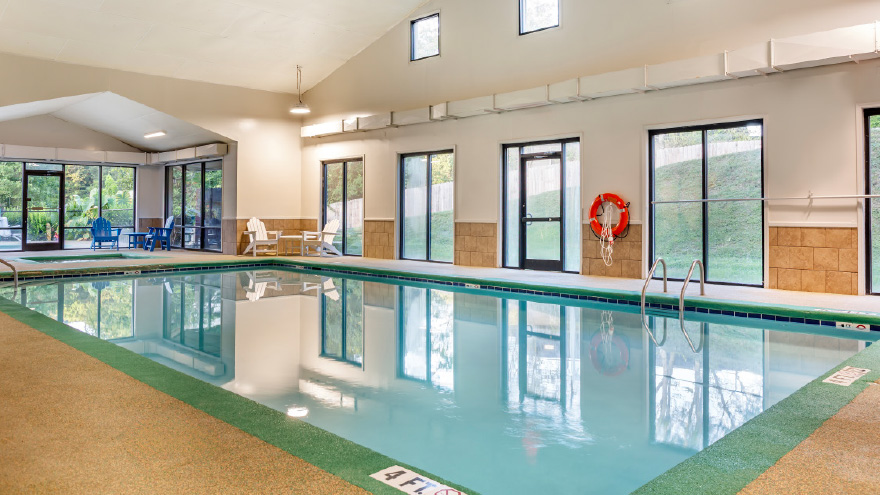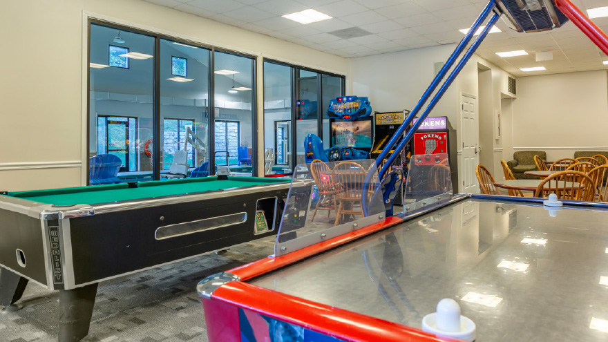 The resort features an indoor pool, an outdoor heated pool, hot tub, game and billiard rooms, a barbecue grilling area, playground, movie rentals, fire pit, fitness center and clubhouse.